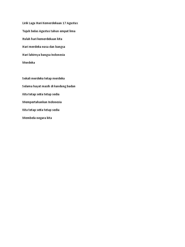 Lirik Lagu 17 Agustus Beserta Maknanya Halaman 2 Varia Katadata.co.id , Salah satu lagu yang sering dinyanyikan adalah hari merdeka.